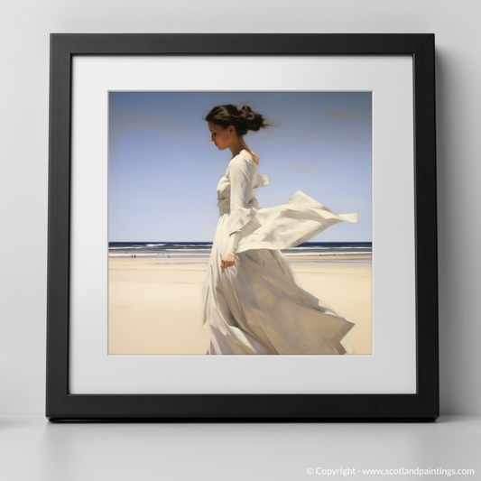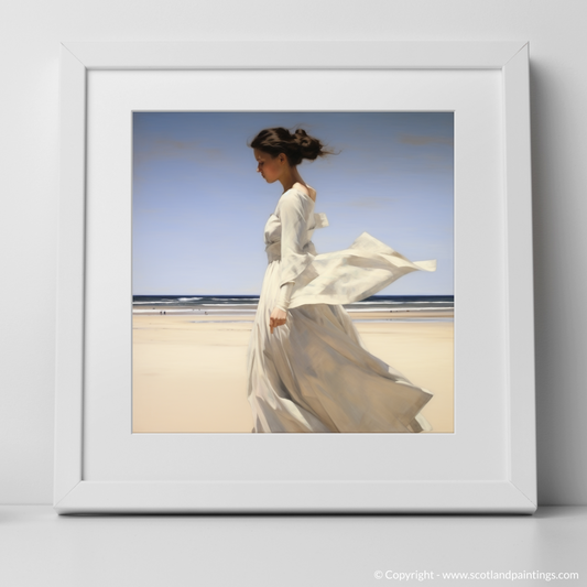 Serenity by the Shore: A Woman in White at Balmedie Beach