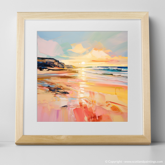 Painting and Art Print of Balmedie Beach at golden hour entitled "Golden Hour Embrace at Balmedie Beach".