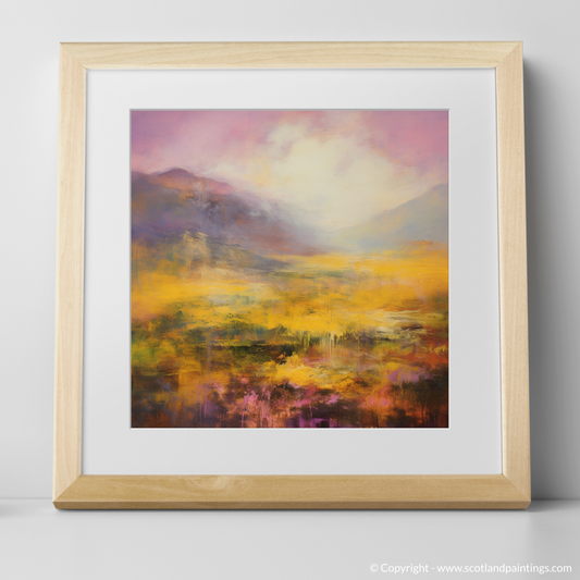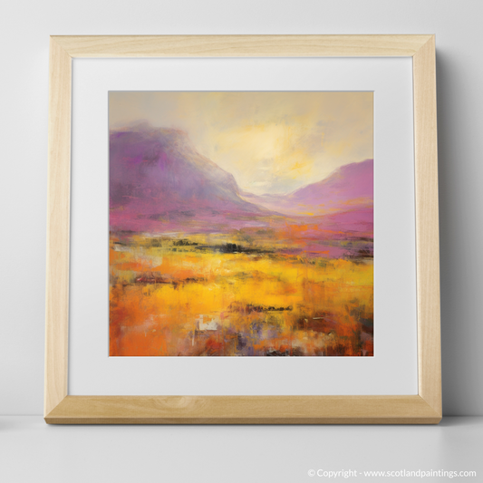 Painting and Art Print of Golden light on heather in Glencoe entitled "Golden Heather Glow: An Abstract Ode to Glencoe's Majesty".