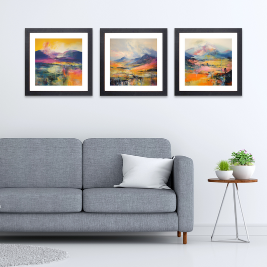 Choosing a print from our Abstract Expressionism Collection means infusing your space with a piece of Scotland's soul, wrapped in the expressive freedom of abstract art. Our high-quality framed prints - available in black, white, or natural wood frames - are designed to complement any decor, while our hand-stretched canvas prints offer a gallery-esque feel, adding an extra touch of elegance and sophistication.