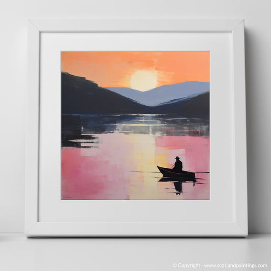 Painting and Art Print of Silhouetted fisherman on Loch Lomond entitled "Silhouetted Fisherman at Dusk: An Abstract Impression of Loch Lomond".