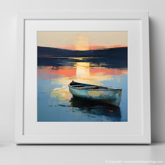 Painting and Art Print of Lone rowboat on Loch Lomond at dusk entitled "Dusk Serenade on Loch Lomond".