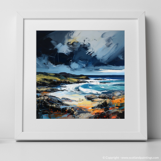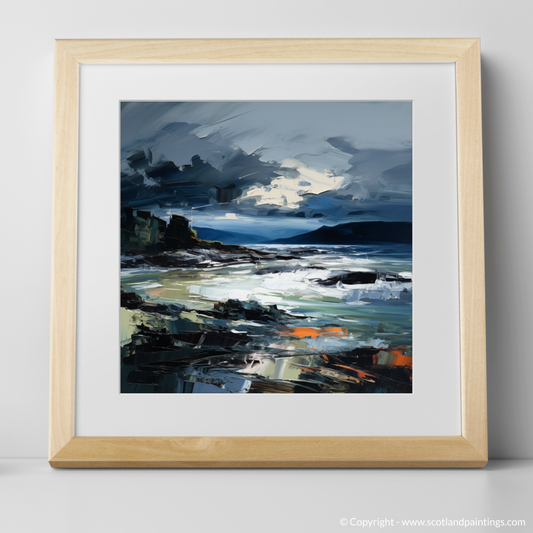 Painting and Art Print of Ardtun Bay with a stormy sky entitled "Tempestuous Ardtun Bay: An Expressionist Ode to Scotland's Coastal Fury".