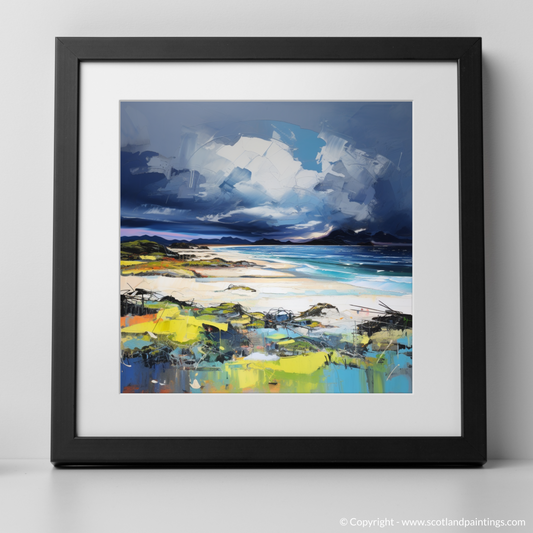 Painting and Art Print of Arisaig Beach with a stormy sky entitled "Storm's Embrace: Arisaig Beach in Expressionist Colour".