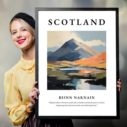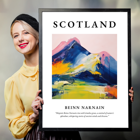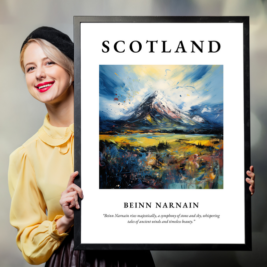 For those who have walked its paths or dream to, owning a print of Beinn Narnain can serve as a cherished memento or an inspiration for future adventures. Our high-quality framed prints encapsulate the spirit of Beinn Narnain and bring a piece of the Scottish Highlands into your home or office. Chosen specifically to complement the vibrant palette of the Scottish landscape, our natural wood frames echo the organic beauty of Beinn Narnain itself, making them a perfect fit for any environment.