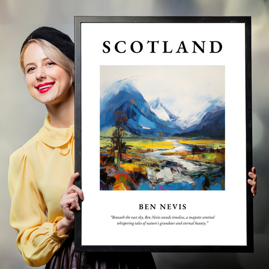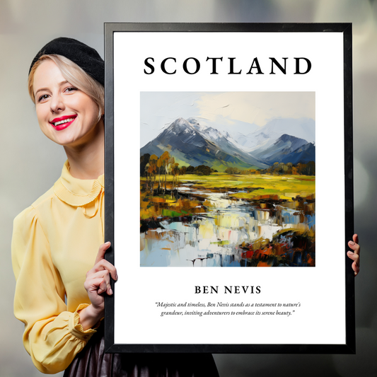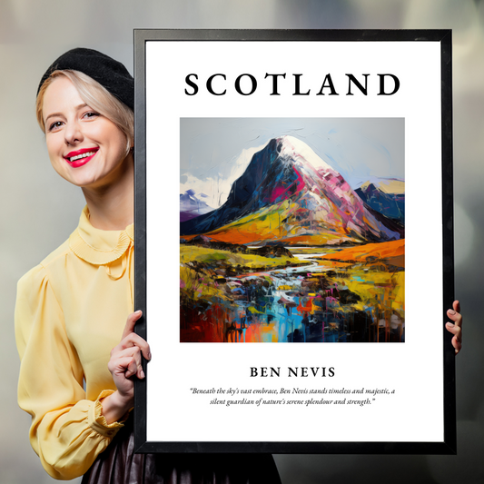 Why might you want to bring a part of this grandeur into your own space? A high-quality framed print of Ben Nevis is not merely a decoration; it's a window to the wild soul of Scotland, a daily reminder of nature's splendour and the adventures that await in the Scottish Highlands. Selected with care, our prints are beautifully presented with a choice of black, white, or natural wood frames to complement your decor. The framed prints we offer embody sophistication and endurance, much like the mountain itself, and make for an enduring gift to cherish the breathtaking allure of Ben Nevis.