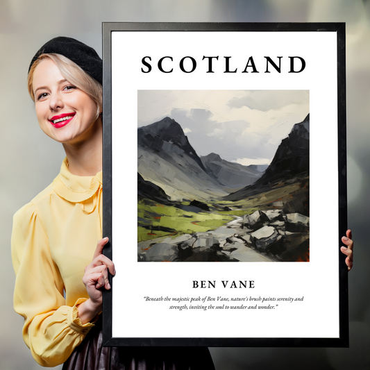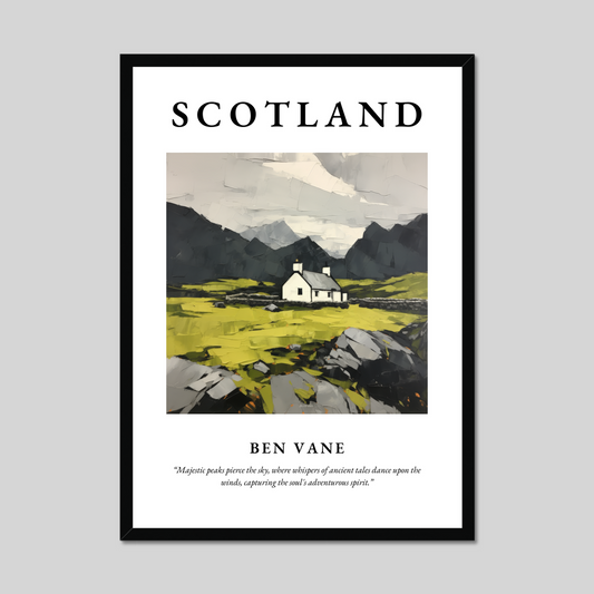 Embracing the rich tapestry of Scottish nature, our selection of high-quality framed prints captures Ben Vane's essence, offering you a piece of this enthralling landscape to take home. By choosing one of our framed prints, you can harness the mountain's enduring spirit and bring it into your living space or office. The arresting scenes, encased in your choice of black, white, or natural wood frames, provide not just a decorative piece, but a window to the Highlands—a constant reminder of the magnificence of the natural world. A framed print of Ben Vane makes a thoughtful and evocative gift for anyone who cherishes the wild romance of Scotland's scenery or who has conquered its peaks and wishes to relive their adventure.