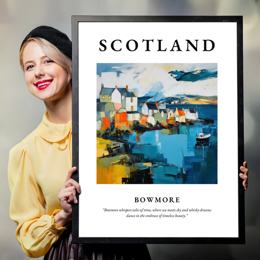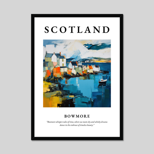 Among our print options, the high-quality framed prints stand out—with your choice of black, white, or natural wood frames, they can complement any decor, adding a touch of Bowmore's serene beauty to your home or office. They are a perfect way to carry a piece of Scotland with you or as a special gift that encapsulates the soul-stirring essence of Bowmore for someone dear.