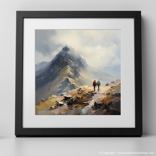 Hikers Ascending Buachaille Summit: An Abstract Highland Adventure