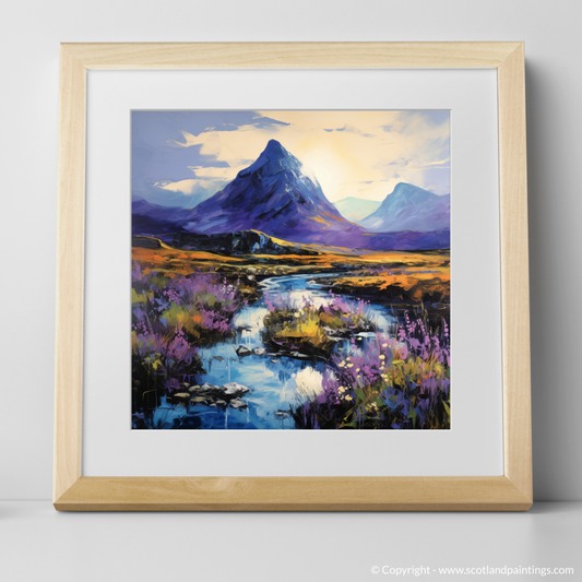 Painting and Art Print of Buachaille sunrise in Glencoe. Buachaille Sunrise: An Expressionist Ode to Glencoe's Majesty.