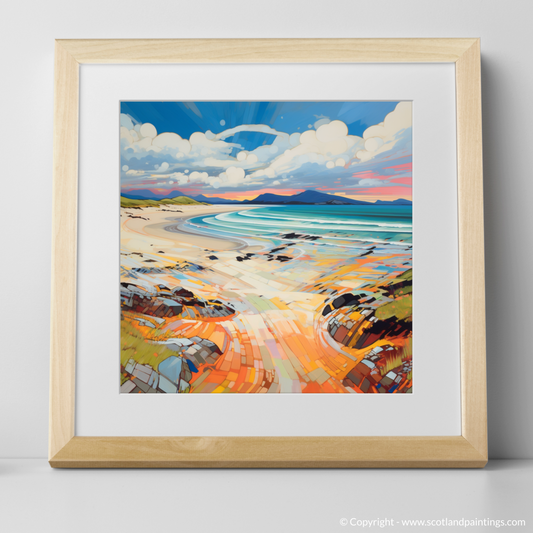 Painting and Art Print of Camusdarach Beach, Arisaig entitled "Turquoise Whispers and Tangerine Warmth: A Contemporary Homage to Camusdarach Beach".