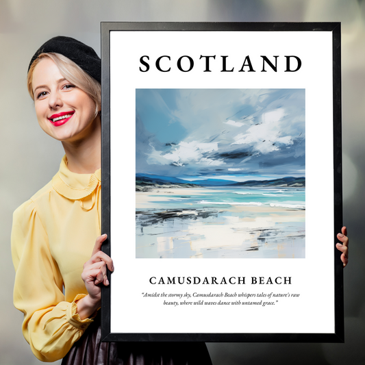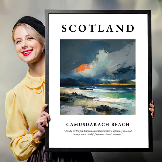 The unspoiled serenity of Camusdarach Beach resonates particularly well with the Impressionist art style, where the interplay of light and color can be explored deeply. The shifting hues of the sea, the dancing grasses on the dunes, and the dramatic changes in weather provide endless inspiration for the artist's canvas, allowing onlookers to experience the raw beauty of Scotland through a vibrant new lens.