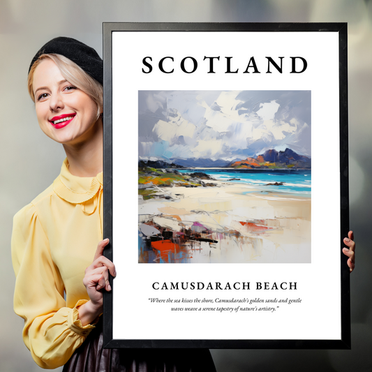 The unspoiled serenity of Camusdarach Beach resonates particularly well with the Impressionist art style, where the interplay of light and color can be explored deeply. The shifting hues of the sea, the dancing grasses on the dunes, and the dramatic changes in weather provide endless inspiration for the artist's canvas, allowing onlookers to experience the raw beauty of Scotland through a vibrant new lens.