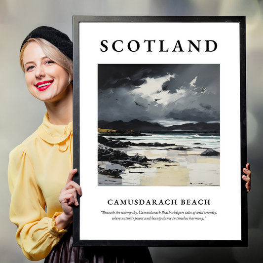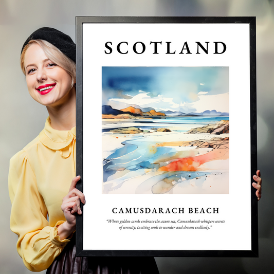 At our gallery, we understand the desire to capture a piece of this natural wonder. That’s why we feature high quality hand-stretched canvas prints of Camusdarach Beach, allowing you to bring the essence of Scottish beauty into your home or office. Our canvases, meticulously crafted to preserve the depth and texture of the original paintings, offer an immersive experience akin to gazing out upon the beach itself. Whether to embrace your love of the Scottish landscapes or to present an unforgettable gift, acquiring a canvas print of Camusdarach Beach promises to infuse any space with the romance and serenity of this coastal haven.