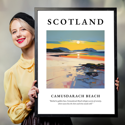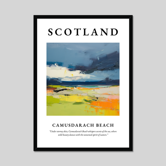At our gallery, we understand the desire to capture a piece of this natural wonder. That’s why we feature high quality hand-stretched canvas prints of Camusdarach Beach, allowing you to bring the essence of Scottish beauty into your home or office. Our canvases, meticulously crafted to preserve the depth and texture of the original paintings, offer an immersive experience akin to gazing out upon the beach itself. Whether to embrace your love of the Scottish landscapes or to present an unforgettable gift, acquiring a canvas print of Camusdarach Beach promises to infuse any space with the romance and serenity of this coastal haven.