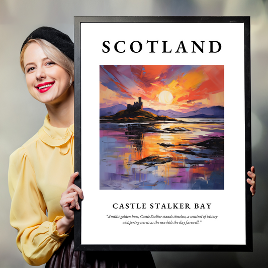 The allure of Castle Stalker Bay goes beyond its visual charm; the castle's rich past reaches back to the 14th century, with connections to the infamous Stewart kings of Scotland. Over the years, it has borne witness to countless tales of clan rivalries, Jacobite uprisings, and the ebb and flow of peace and conflict. This storied history renders each painting of Castle Stalker Bay not merely an image but a portal to a bygone era, inviting viewers to roam the highlands' memory lanes.