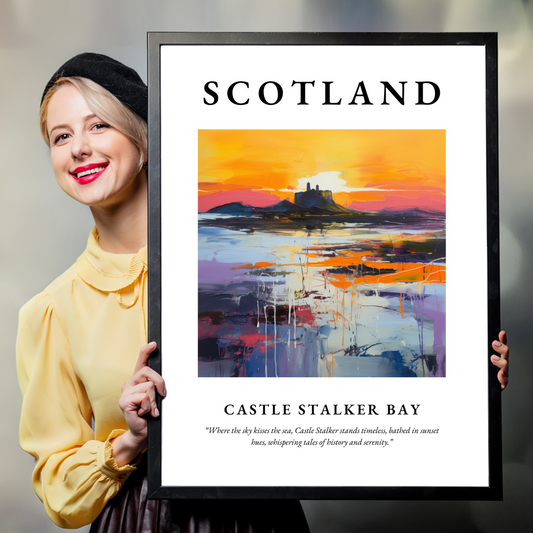 Our collection of high-quality framed prints captures the timeless appeal of Castle Stalker Bay, making them an ideal addition to any room seeking a touch of Scottish enchantment. Whether you opt for a sleek black frame to complement a modern interior or a hand-stretched canvas print to embrace the tactile element of traditional art styles, these prints serve as a daily reminder of Scotland's enduring beauty.