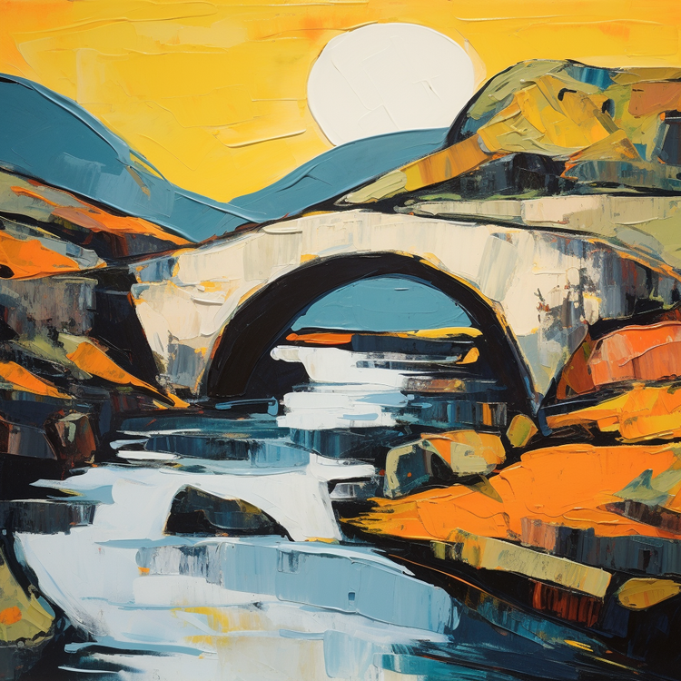 Nestled within the heart of Scotland's arresting landscapes, Clachan Bridge stands as a beacon of historical architecture and scenic beauty. Known affectionately as the "Bridge over the Atlantic," this quaint stone bridge spans the Clachan Sound between the Isle of Seil and mainland Argyll. Built in 1792 by engineer Robert Mylne, this graceful bridge has not only connected lands but also people, histories, and stories for centuries, making it a poignant subject for various art styles, particularly those that evoke a sense of romanticism and nostalgia.