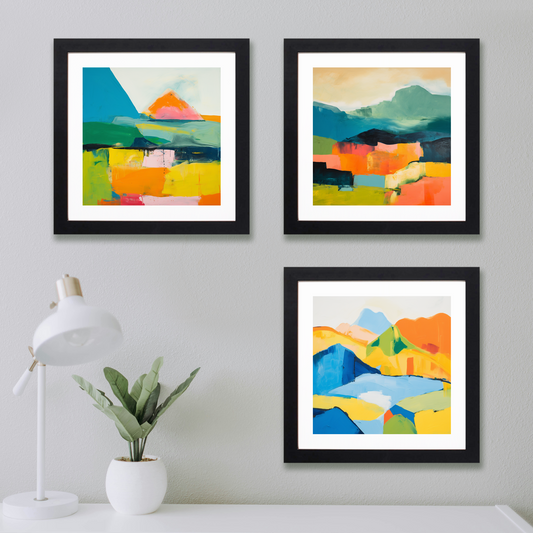 Quality is paramount in our Confidently Bold Collection. Available in elegant framed options - black, white, or natural wood - or as hand-stretched canvas prints, each piece is meticulously crafted to enhance the vibrant colours and bold shapes of the original artwork. For those who love to add a personal touch, our print-only option allows for bespoke framing to complement individual style and decor.