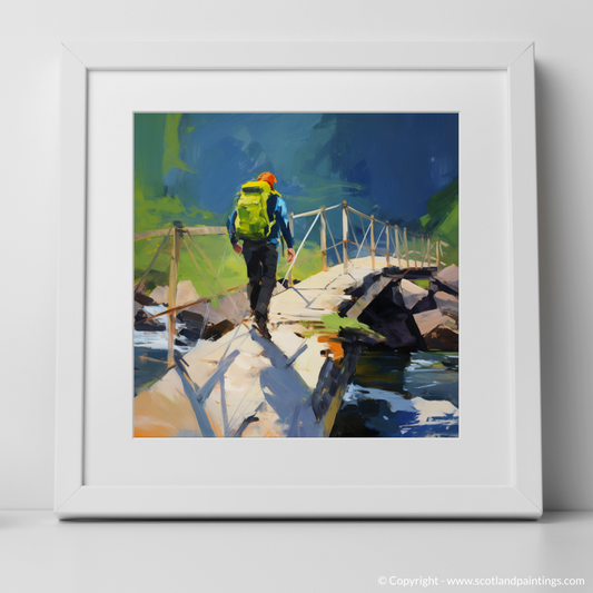 Backpacker's Journey Across Glencoe's Rustic Bridge