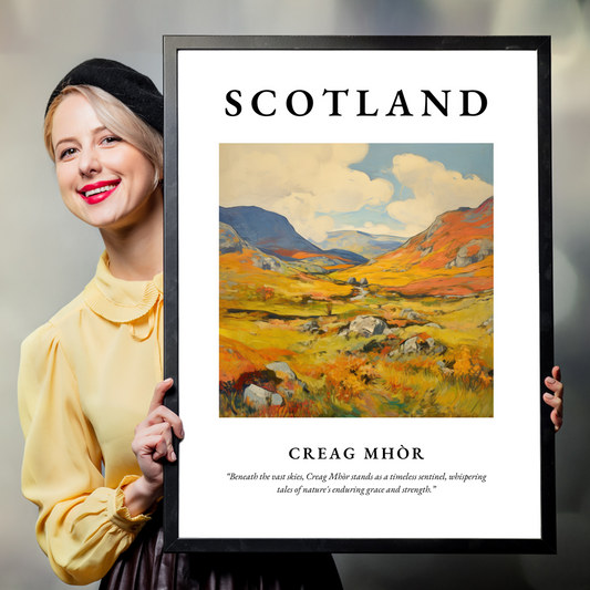 Given its dramatic topography and the powerful sense of place it evokes, Creag Mhòr resonates particularly well with the Romantic art style. The heightened emotions and emphasis on the grandeur of nature that define this movement find a spiritual home amidst these highland contours. Our collection of fine art prints skilfully captures the raw emotion and wild spirit of Creag Mhòr, offering admirers a chance to take a piece of this sublime scenery into their own homes.