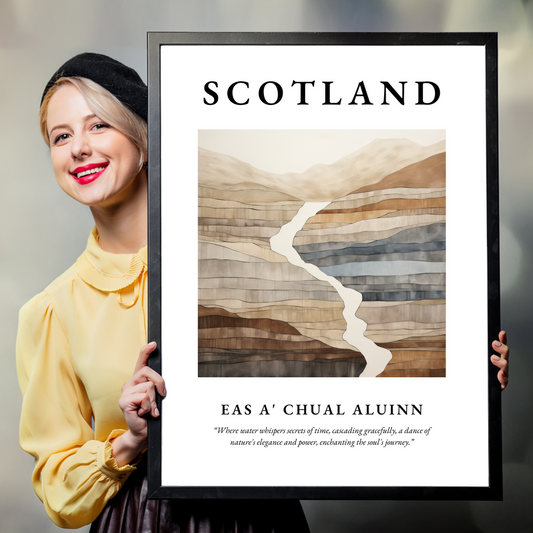 Our collection of high-quality framed prints elegantly encapsulates the essence of Eas a' Chual Aluinn. Opt for a hand-stretched canvas print to bring a centrepiece of the Scottish wilderness into your living space or office. A print of Eas a' Chual Aluinn, framed in natural wood, is not only a sophisticated addition to your art collection, but it also serves as a constant reminder of the indomitable spirit of nature—a captivating gift for someone with a love for Scotland's dramatic landscapes.
