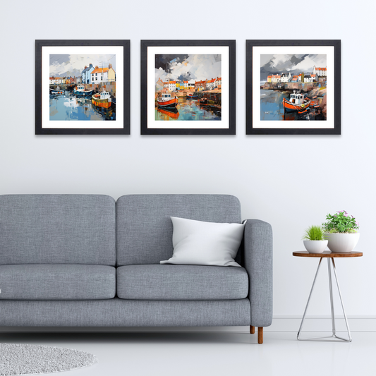St Monans Harbour with a stormy sky - Set of Three Prints