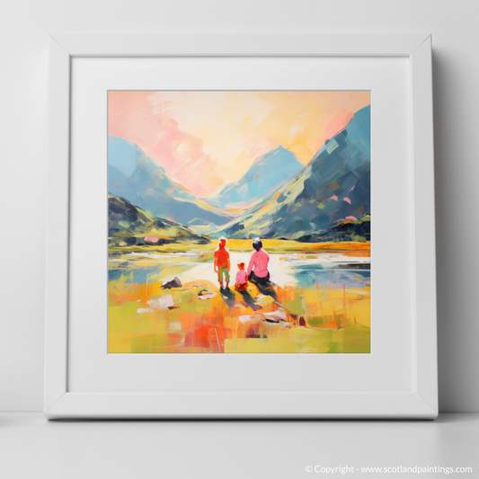 Painting and Art Print of Family in Glencoe during summer entitled "Summer Serenity in Glencoe: A Family's Highland Idyll".