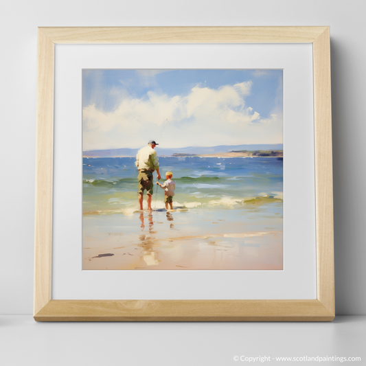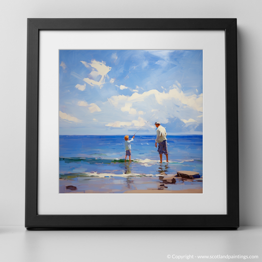 Painting and Art Print of A dad and son fishing at Rosemarkie Beach entitled "Fishing Together at Rosemarkie Beach - An Impressionist Reflection of Father-Son Bonding".