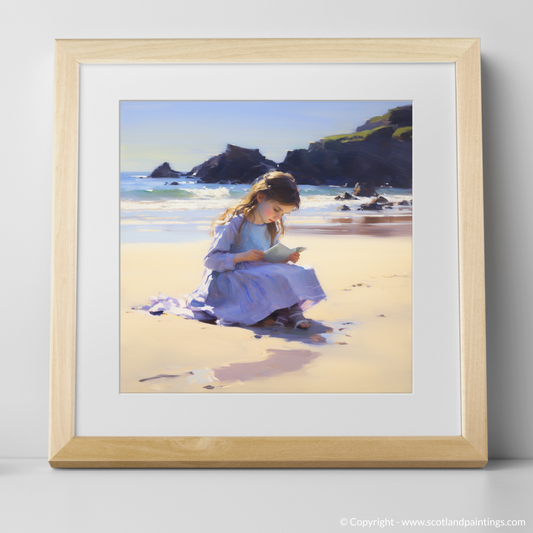 Painting and Art Print of A girl writing her name in the sand at Eyemouth Beach entitled "Ephemeral Impressions at Eyemouth Beach".