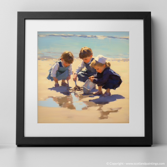 Painting and Art Print of Three children digging in the sand at St. Andrews Beach entitled "Children of the Shore: A Day at St. Andrews Beach".