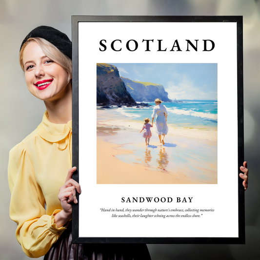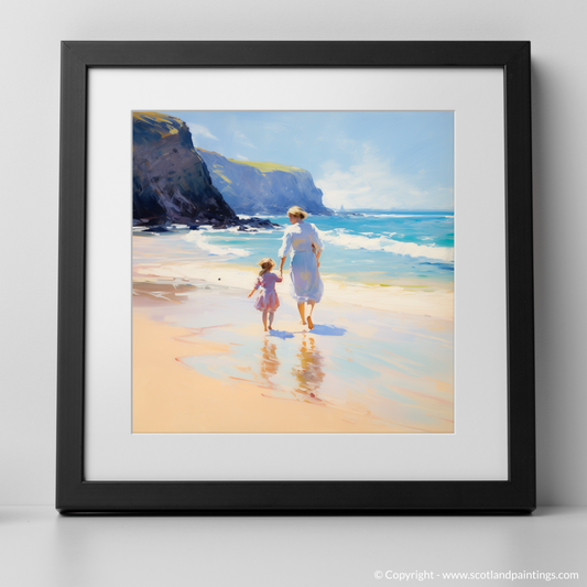 Painting and Art Print of A mum and daughter exploring Sandwood Bay entitled "Mother and Daughter's Coastal Wander at Sandwood Bay".