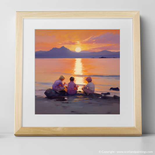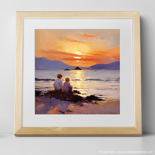 Painting and Art Print of Young explorers watching the sunset over the Isle of Arran from the peaceful Saltcoats Beach entitled "Sunset Wonders on Saltcoats Beach".