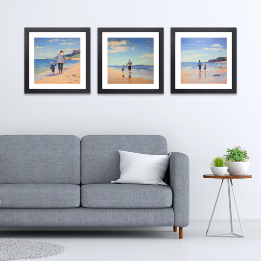 A dad and son walking on Coldingham Bay - Set of Three Prints