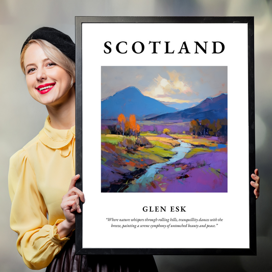 Whether for an art enthusiast or a lover of Scotland’s rugged landscapes, a framed print of Glen Esk would be a cherished possession. Its timeless beauty is a gentle reminder of the untouched wilderness that still exists, beckoning viewers to a world away from the bustle of modern life. For a truly eye-catching piece, select one of our prints framed in natural wood, complementing the organic character of the scenery. A print of Glen Esk is not just decor; it's a window to the soul of Scotland and a perfect gift to kindle the warmth of nature in one's own home.