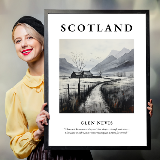 The call to Glen Nevis is not just for those wishing to experience its beauty firsthand but also for those who seek to take a piece of it home. Owning a high-quality framed print of this enchanting locale is like holding a window to the Highlands in your living space. Framed elegantly in black, white, or natural wood, our prints bring the essence of Glen Nevis into your home, transforming your walls into a gallery of Scottish serenity.