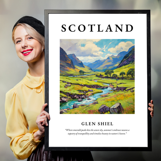 Nestled in the heart of the Scottish Highlands, Glen Shiel is a place of astounding natural beauty and historical significance. This glen, with its towering mountain peaks, meandering river, and deep valleys, provides an evergreen source of inspiration for artists and a serene retreat for nature lovers alike. The allure of Glen Shiel's rugged landscapes has captured the hearts of many, with its arresting vistas often favoured by landscape artists for their dramatic light and shadow, offering a perfect symphony of nature's artistry on canvas.