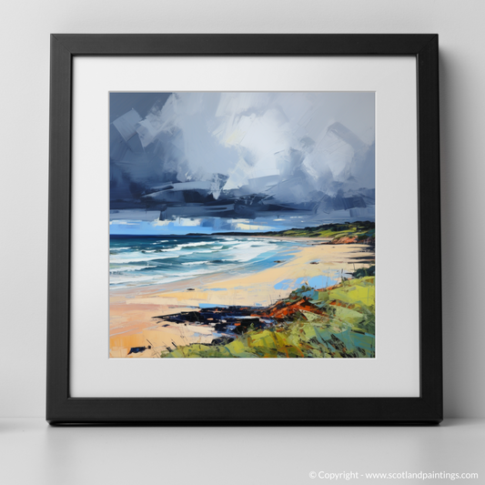 Painting and Art Print of Gullane Beach with a stormy sky entitled "Stormy Skies over Gullane Beach: An Expressionist Ode to Scotland's Coastal Majesty".