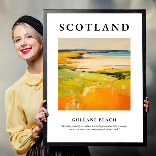 Our collection of high-quality, hand-stretched canvas prints brings the stirring beauty of Gullane Beach into your own space. Whether you're drawn to the soft grasses bending in the coastal breeze or the relentless waves carving patterns in the sand, each painting offers a window to the soul of Scotland's coast. Captured in a range of art styles, from the sweeping impressions of watercolour to the bold strokes of expressionism, our prints embrace the diverse ways in which Gullane Beach can be represented on canvas, appealing to a wide audience of art lovers.