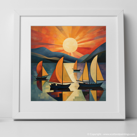Painting and Art Print of Sailing boats on Loch Lomond at sunset entitled "Abstract Sunset Sail on Loch Lomond".