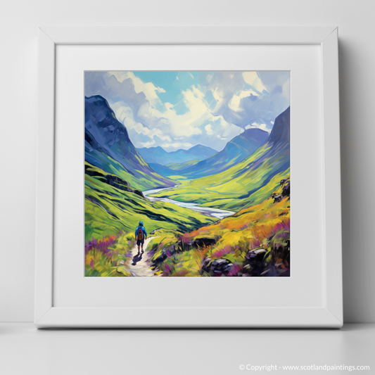 Painting and Art Print of Hikers in Glencoe entitled "Hikers' Haven: An Impressionist Journey through Glencoe".