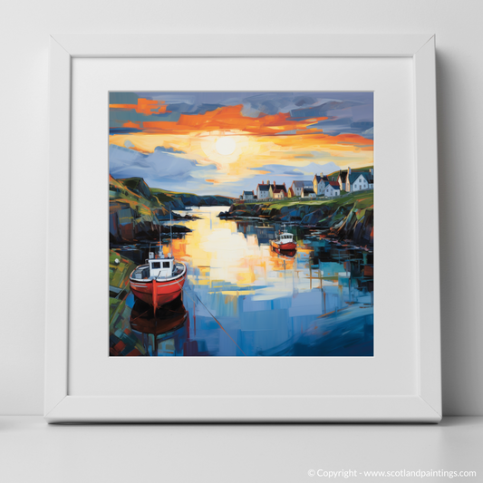 Painting and Art Print of Portnahaven Harbour at dusk entitled "Dusk at Portnahaven: An Expressionist Ode to Scottish Coastal Elegance".
