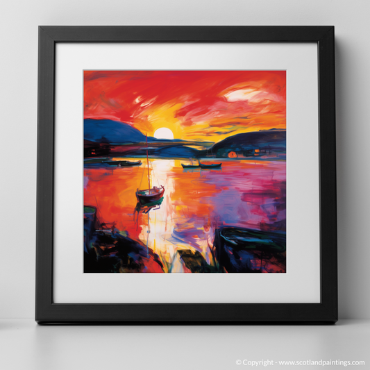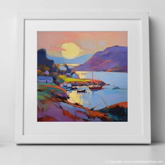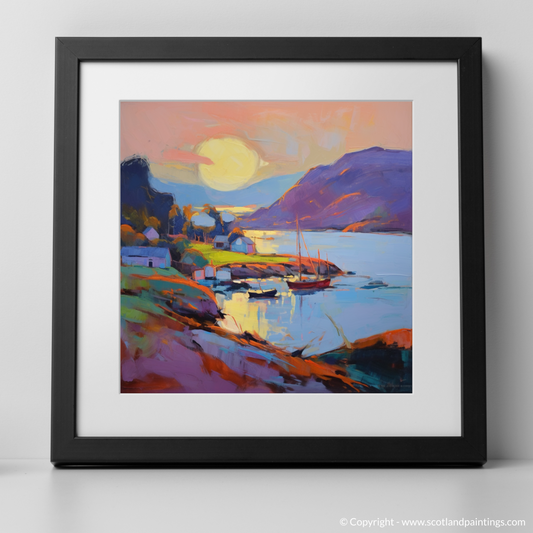 Painting and Art Print of Isleornsay Harbour at sunset entitled "Isleornsay Harbour at Twilight: An Expressionist Ode to Scottish Splendour".