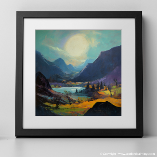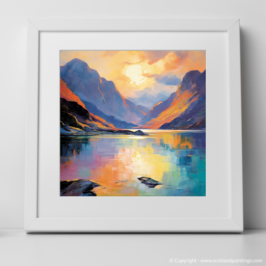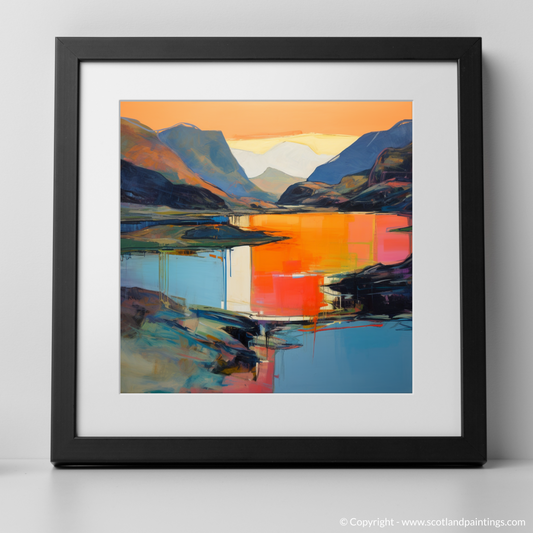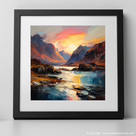Painting and Art Print of Loch Coruisk at sunset entitled "Sunset Embrace at Loch Coruisk - An Expressionist Ode".