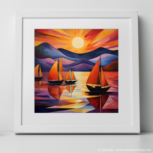 Painting and Art Print of Sailing boats on Loch Lomond at sunset entitled "Sailing into Sunset on Loch Lomond".