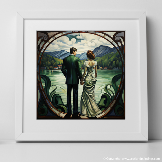 Painting and Art Print of A couple holding hands looking out on Loch Lomond entitled "Hand in Hand at Loch Lomond: An Art Nouveau Tribute".