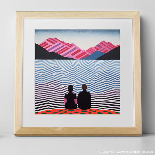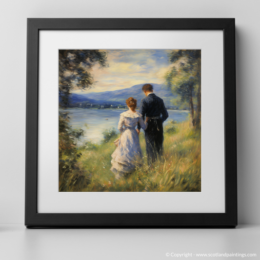 Painting and Art Print of A couple holding hands looking out on Loch Lomond entitled "Hand in Hand at Twilight by Loch Lomond".
