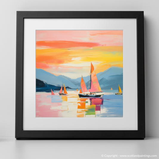 Painting and Art Print of Sailing boats on Loch Lomond at sunset entitled "Sailing into Sunset Serenity on Loch Lomond".