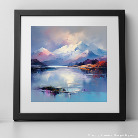 Painting and Art Print of Snow-capped peaks overlooking Loch Lomond entitled "Highland Serenity: Loch Lomond in Expressionist Hues".