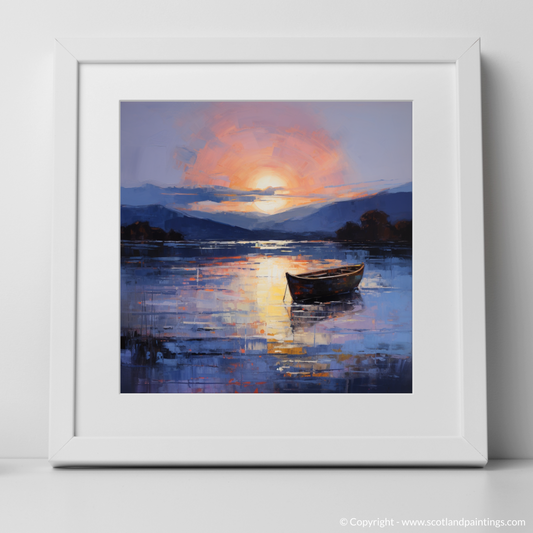 Painting and Art Print of Lone rowboat on Loch Lomond at dusk entitled "Dusk Serenade on Loch Lomond".